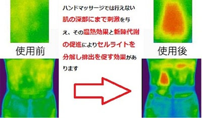 セルライトクラッシャーは毎秒160万回の強力な超音波振動と温熱ジェルの作用で凸凹をもみほぐします。
